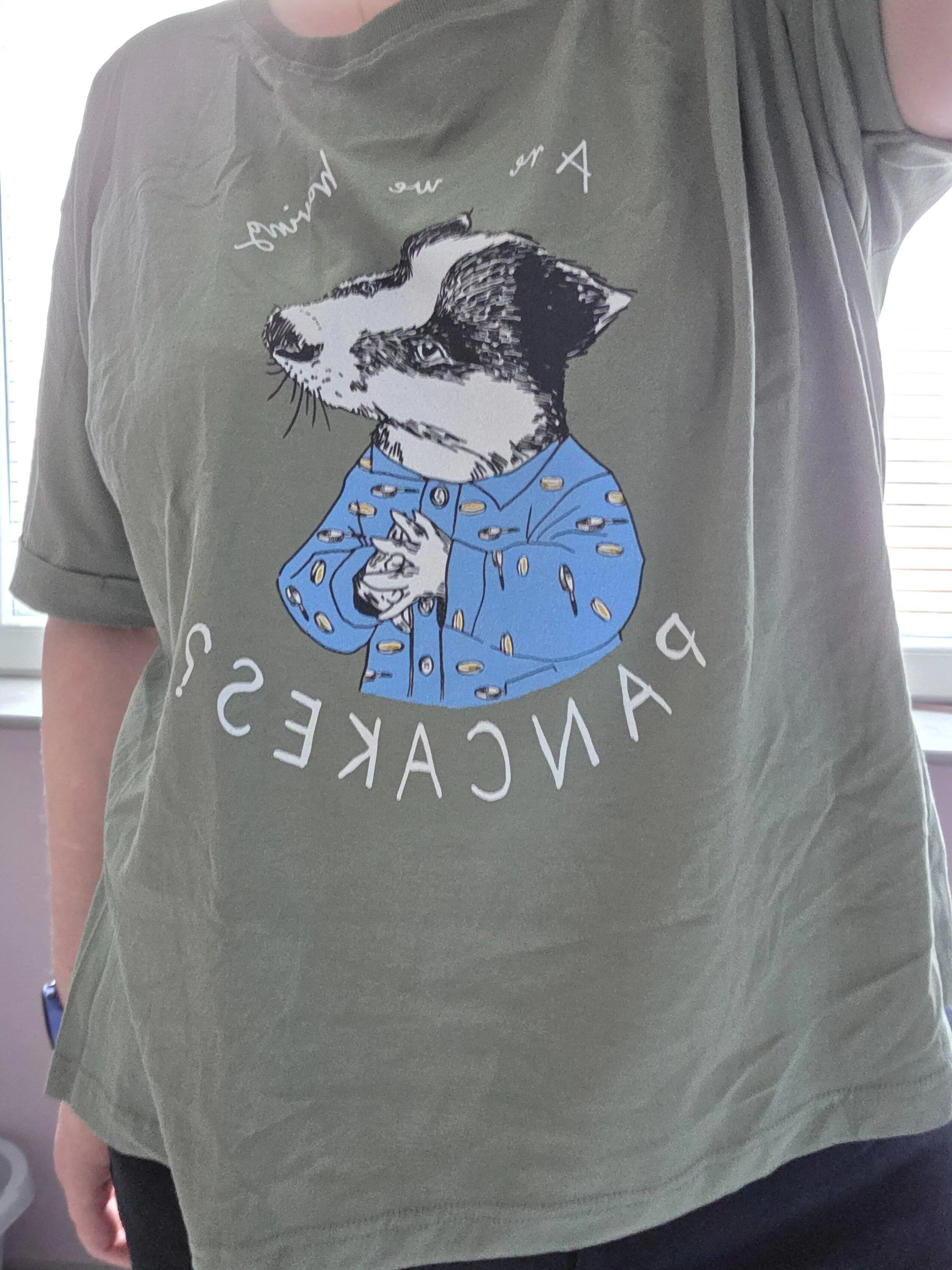 A pancake T-shirt is for every day, not just for Pancake Day! This excitable badger makes the perfect gift for you or the pancake lovers you know.