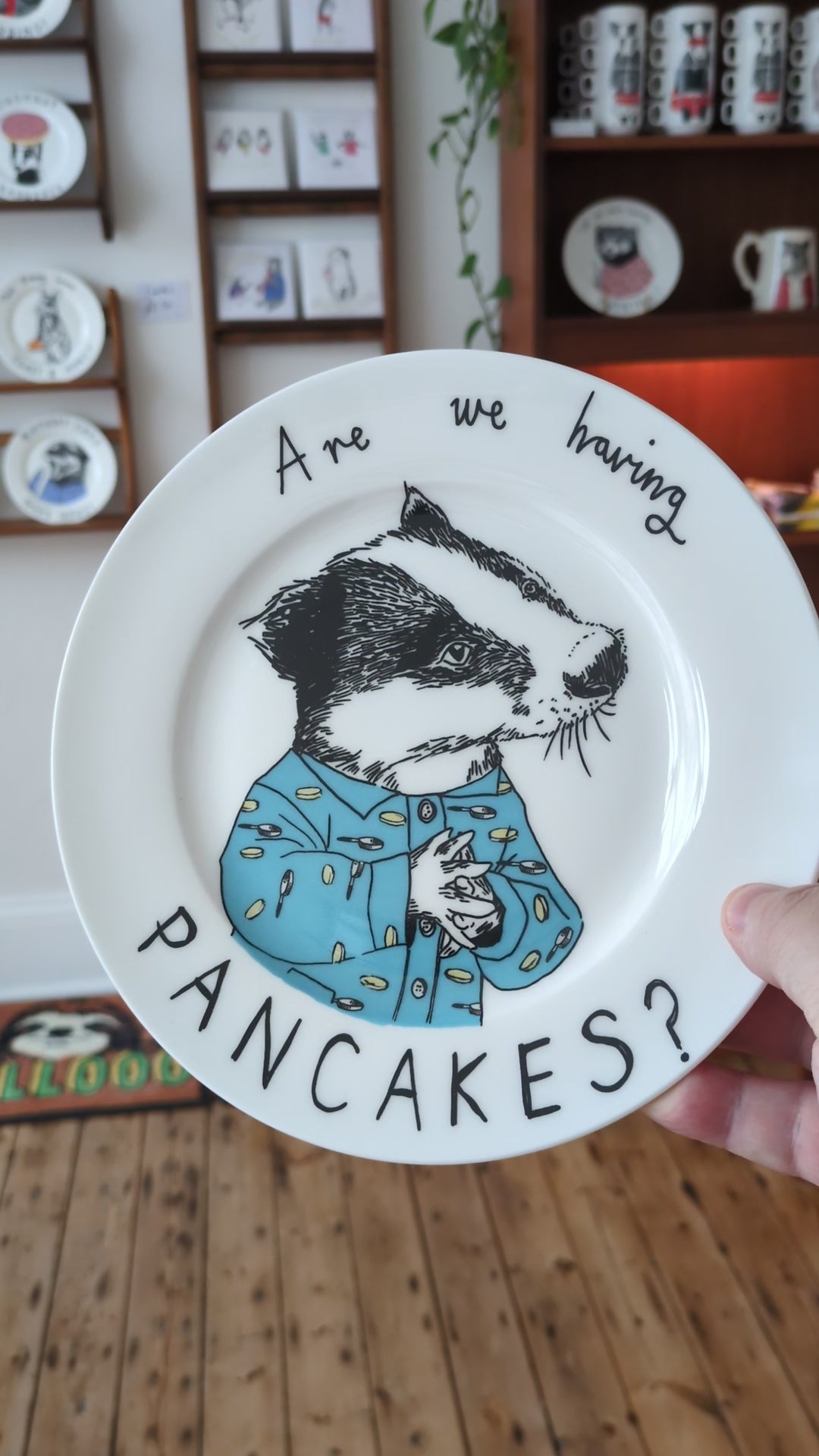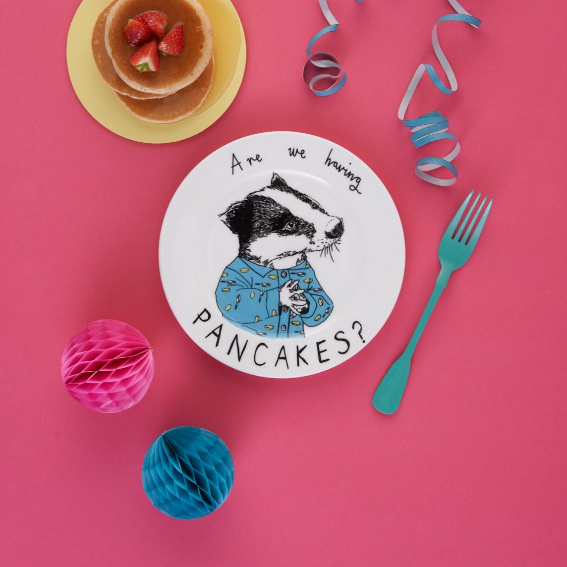 A pancake plate is for every day, not just for Pancake Day! This excitable badger makes the perfect gift for you or the pancake lovers you know.
