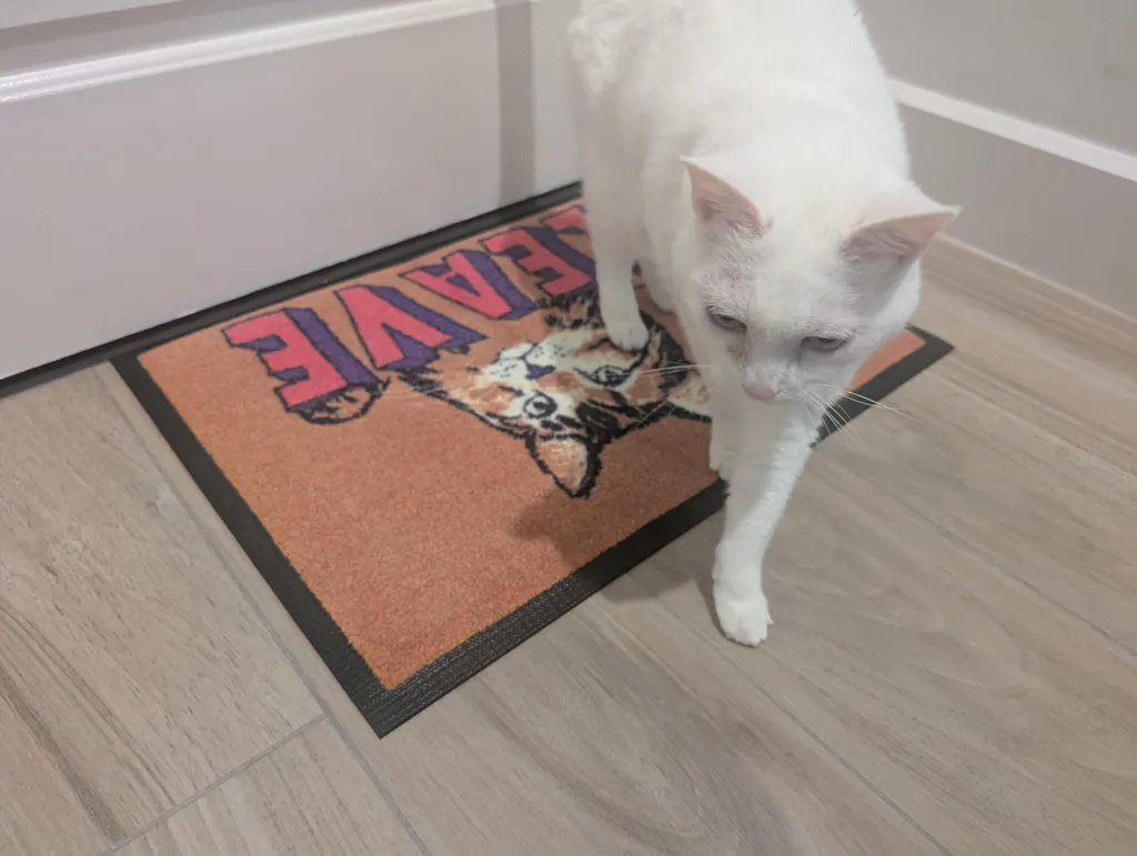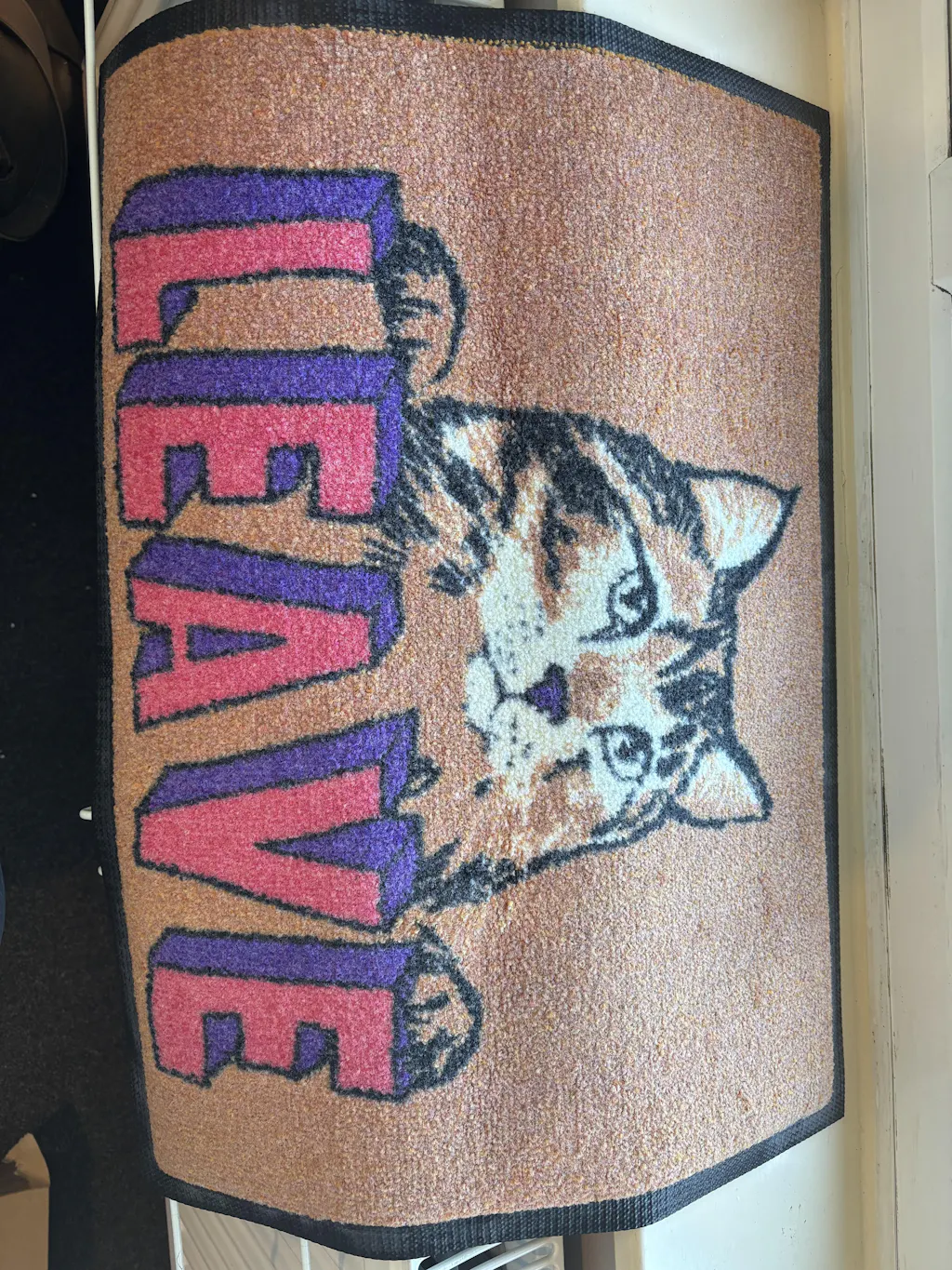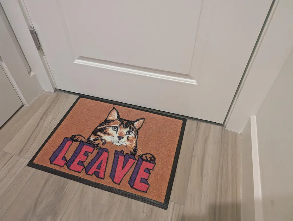 Leave Cat will always want to (un)welcome you and your visitors home with a big fat Leave.